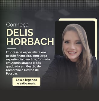 Délis Horbach é empresária e especialista em gestão financeira, ajudando empresas a organizarem suas finanças, aumentarem sua lucratividade e tomarem decisões estratégicas com segurança. Com ampla experiência no setor bancário, formada em Administração e pós-graduada em Gestão Comercial e Gestão de Pessoas, ela alia conhecimento técnico e visão estratégica para transformar a saúde financeira de negócios, proporcionando crescimento sustentável e resultados sólidos.